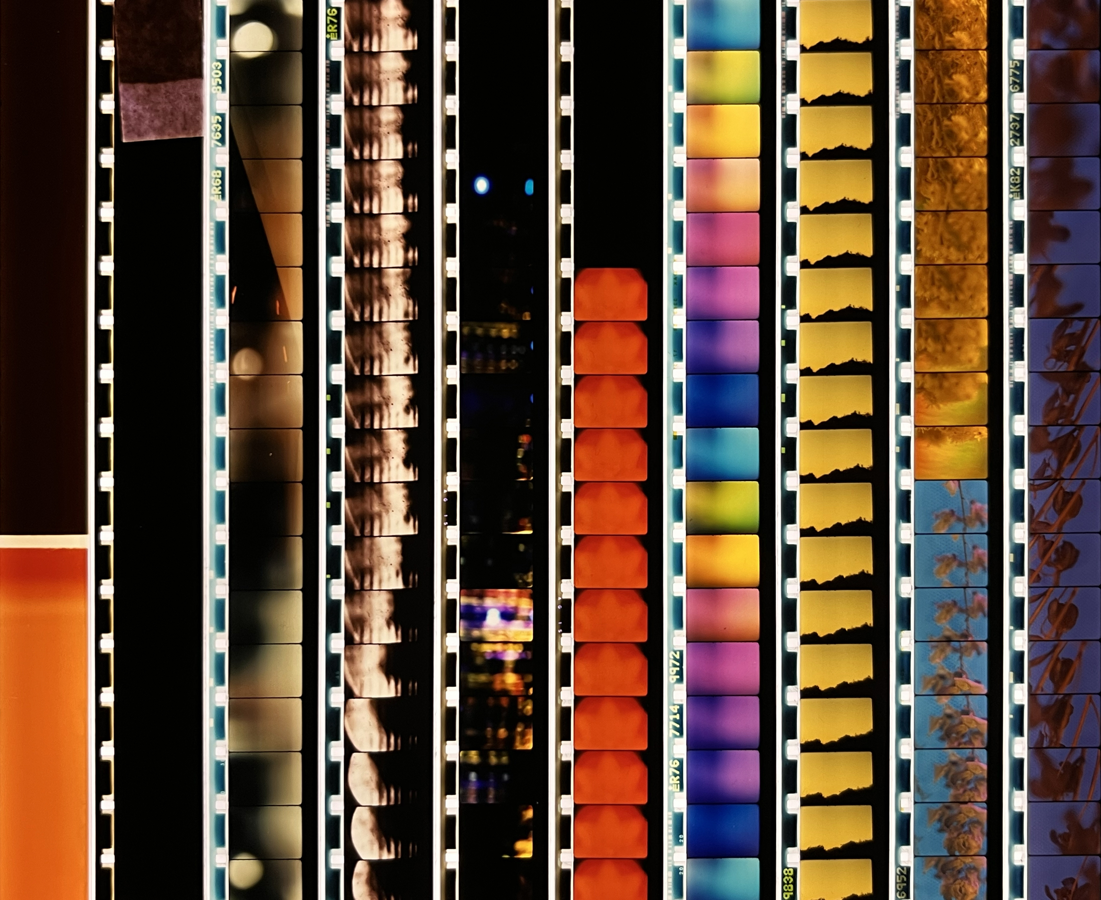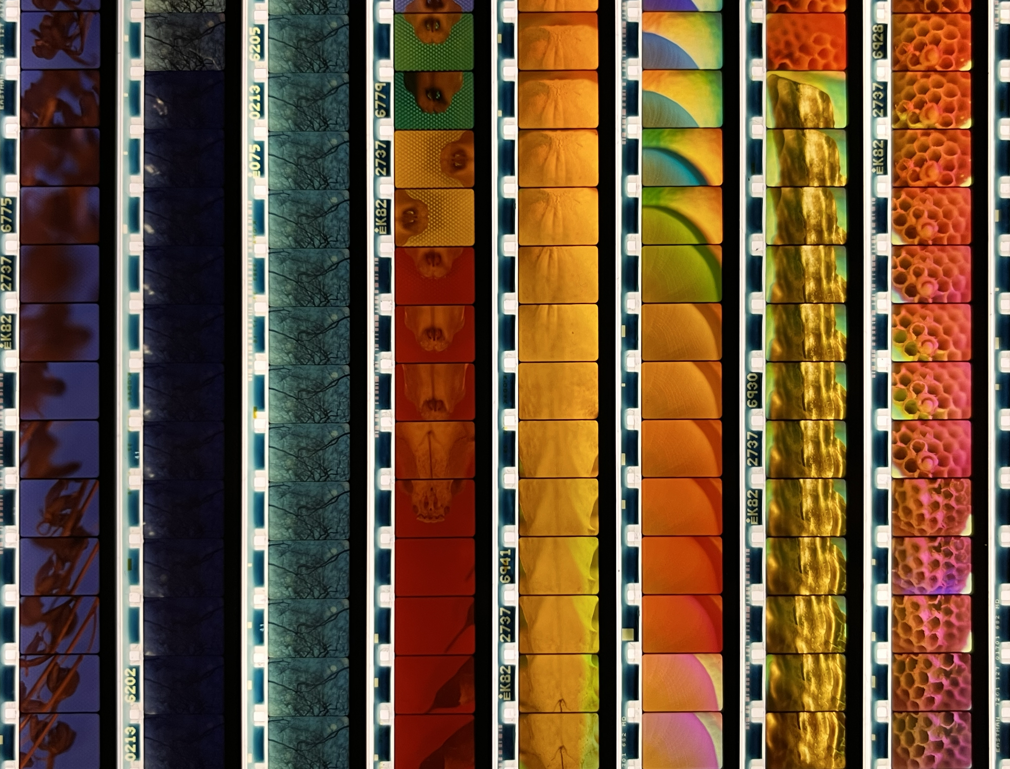With each new film, I explore new formal possibilities to create meaningful connections in time. With this series, I am shifting my experimentation to create objects in space that house time, though are experienced in singular moments. While abstract, these works are also representational; the layers of representation include the representation of time, of specific amounts of time in each light box, representation of the film medium, of my recent 16mm films, of the creatures and objects and spaces and colors in each frame, as well as the representation of my relationship with painting and film.